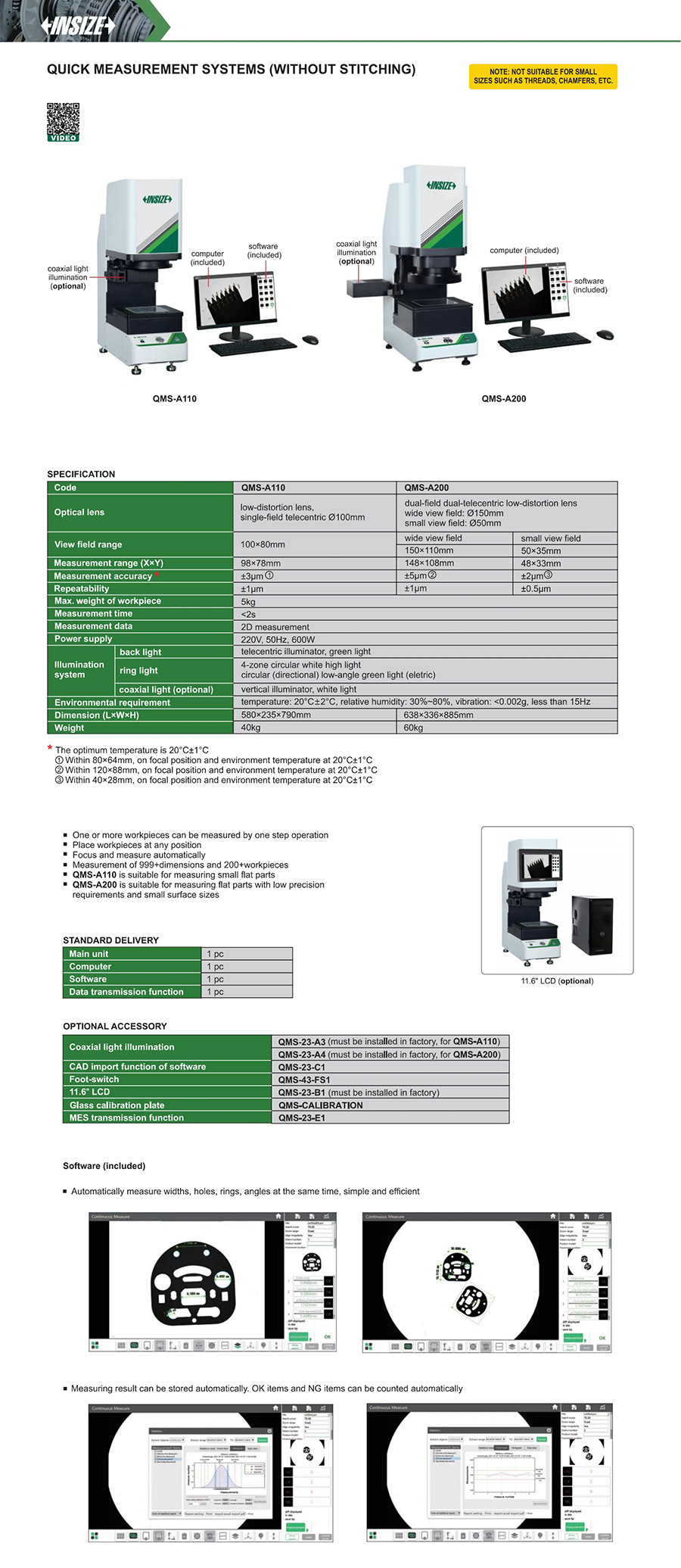 | QMS-A200 | wide view field:148×108mm/ small view field:48×33mm | wide view field:±5μm/small view field:±2μm | wide view field:±1μm/small view field:±0.5μm | 5kg |