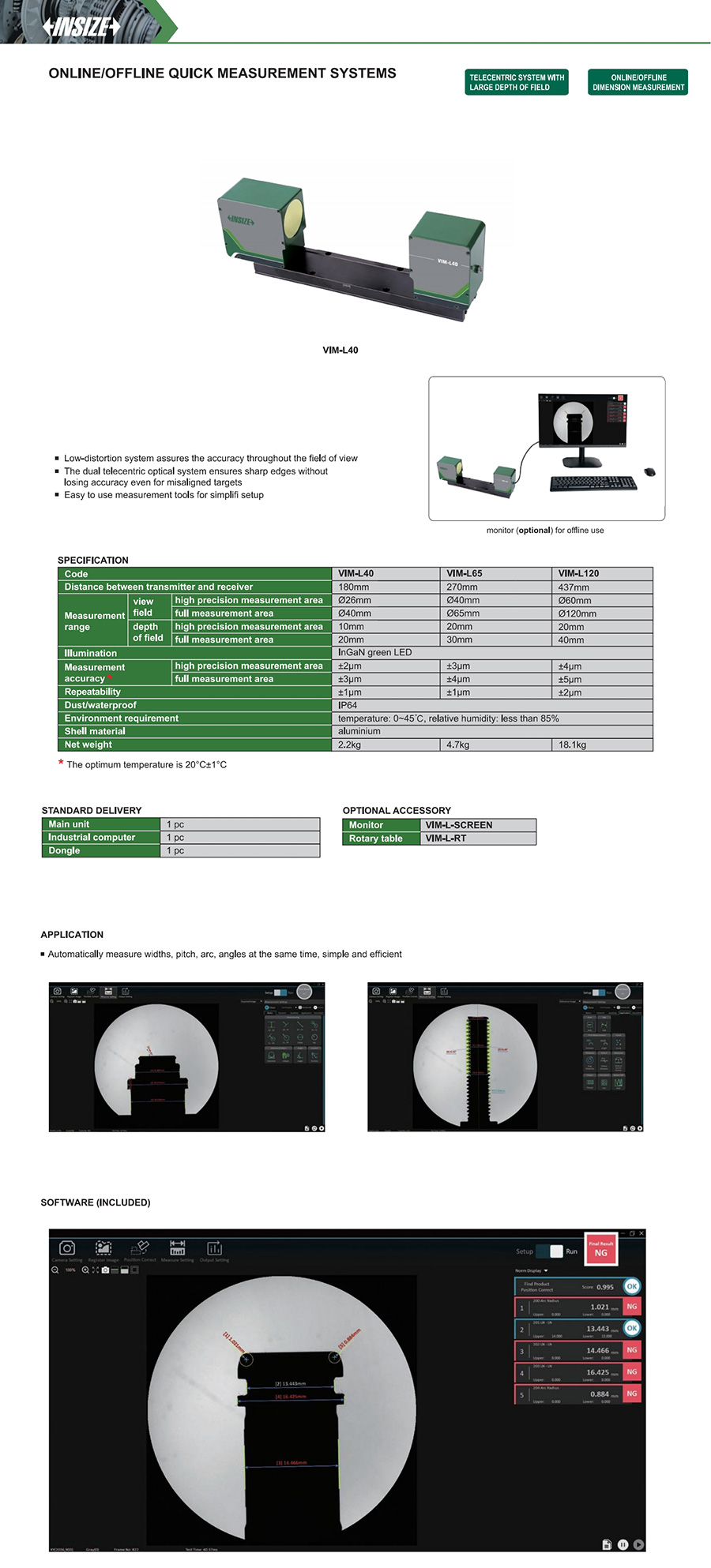 | VIM-L40 | view field:Ø26mm/Ø40mm;depth of field:10mm/20mm | ±2μm/±3μm | ±1μm |