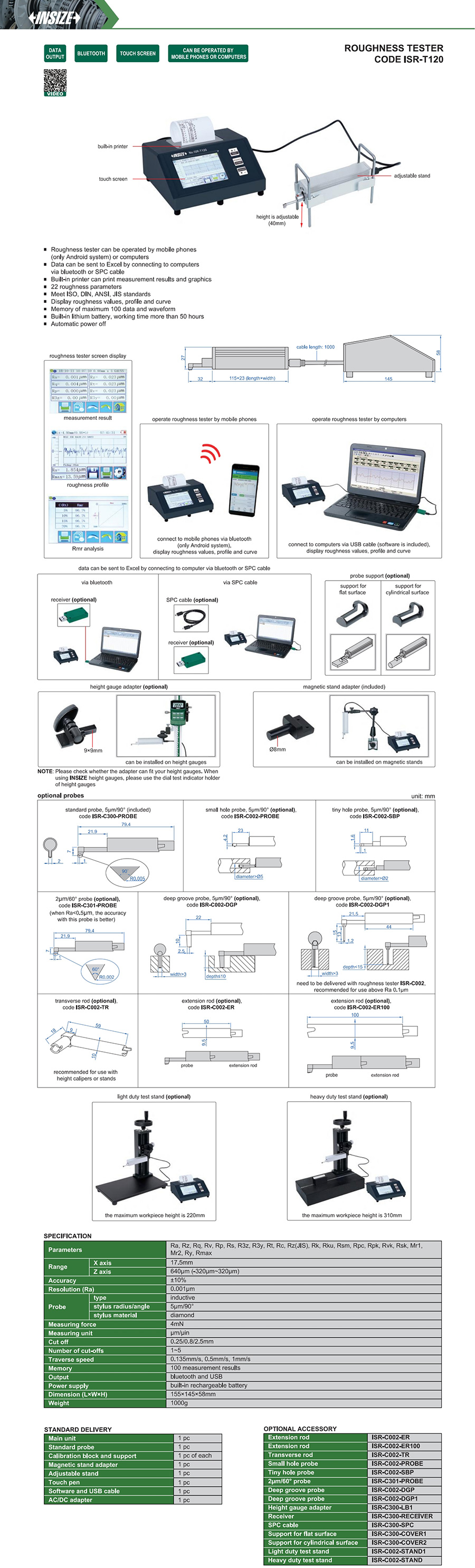 Roughness tester can be operated by mobile phones (only Android system) or computers