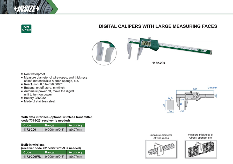 | 1172-200WL | 0-200mm/0-8" | ±0.07mm | 0.01mm/0.0005" | built-in wireless |