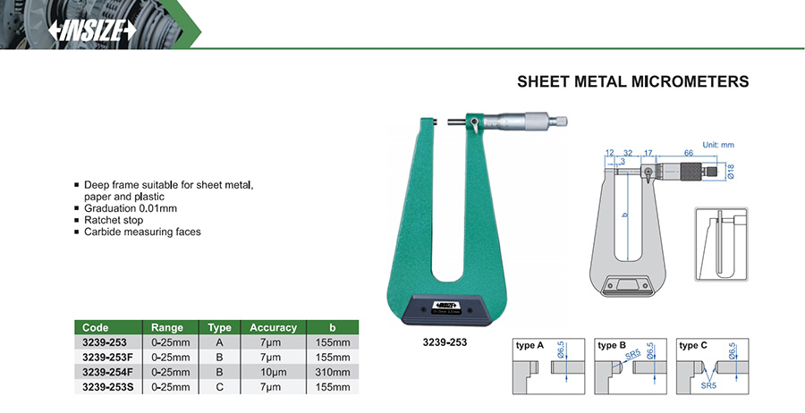 | 3239-253F | B | 0-25mm | 7μm | 0.01mm |