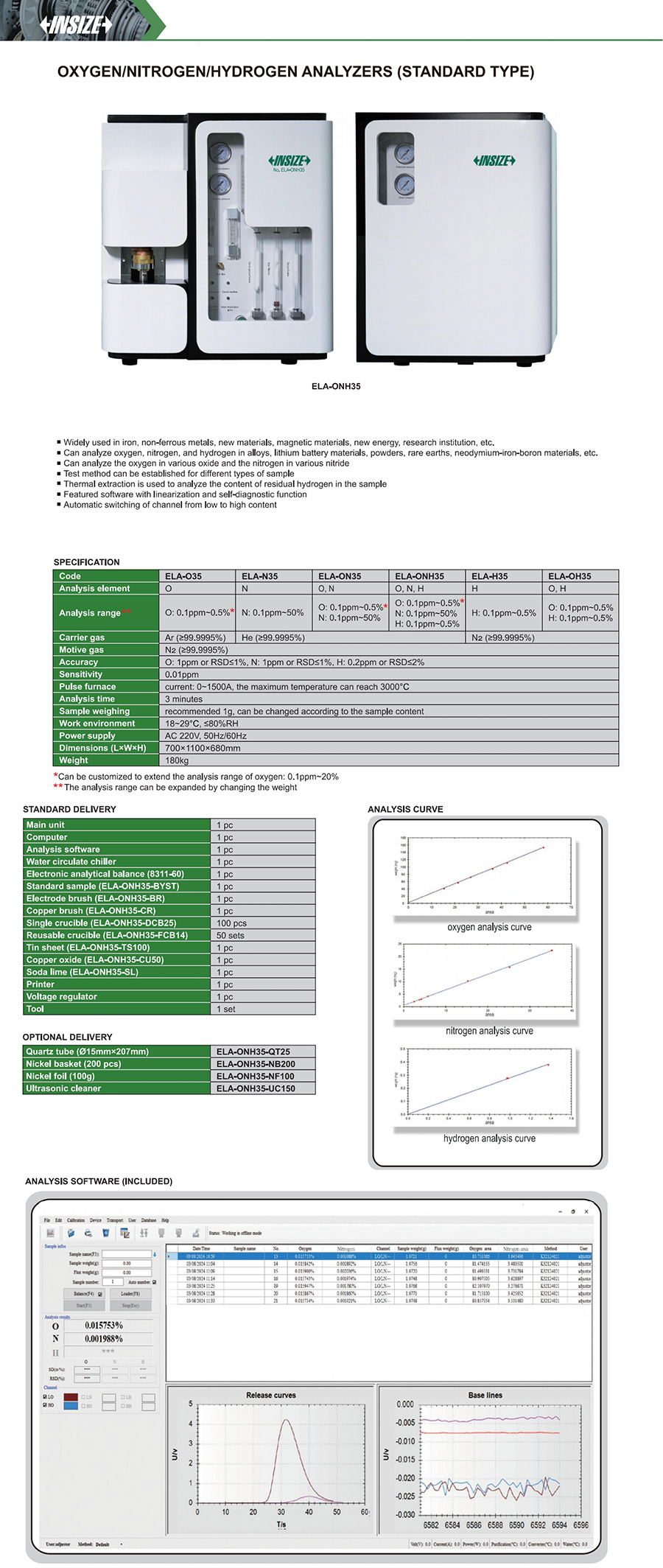 Can analyze oxygen, nitrogen, and hydrogen in alloys, lithium battery materials, powders, rare earths, neodymium-iron-boron materials, etc.