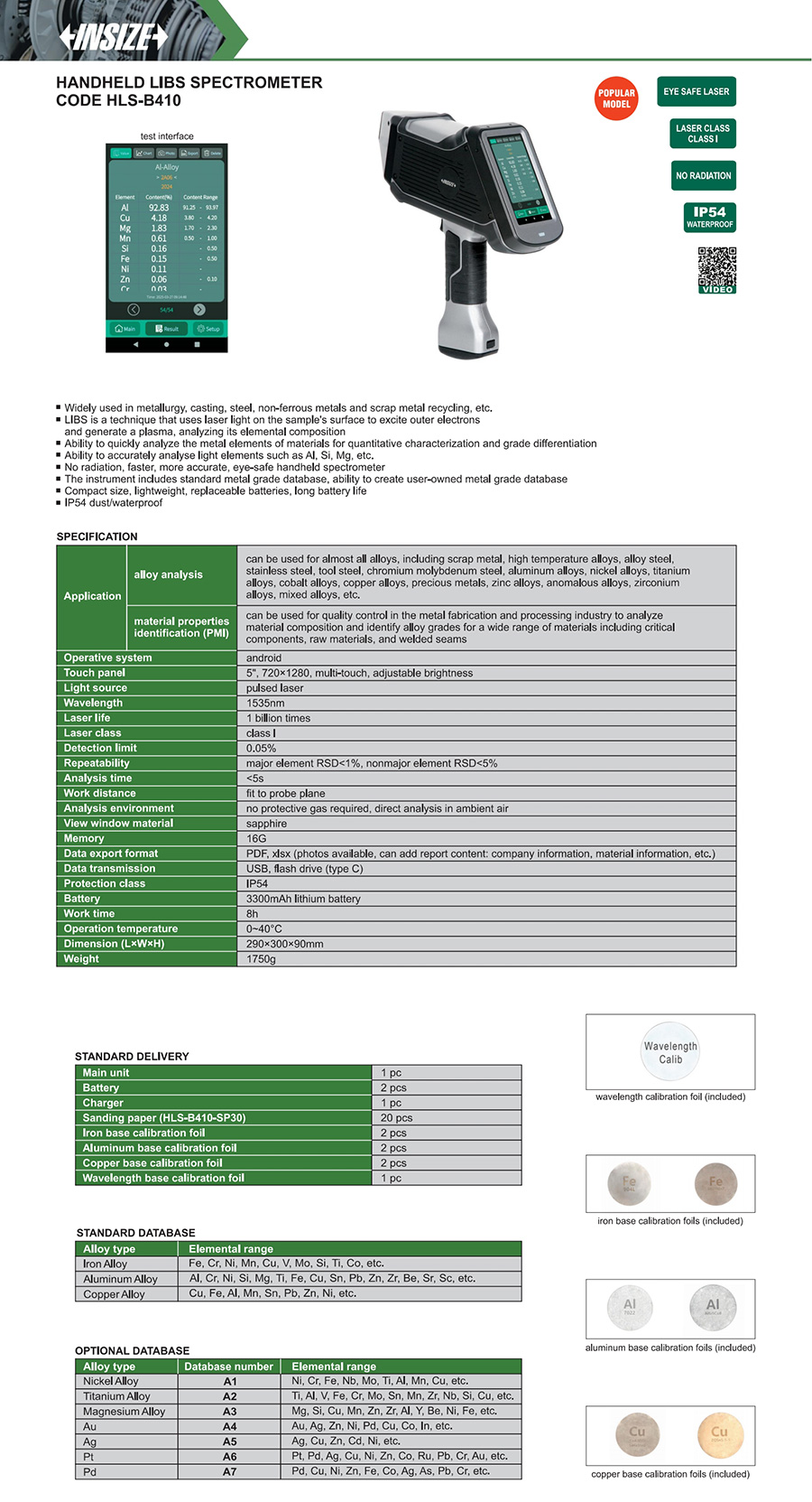 | HLS-B410 | LIBS | component analysis | metal | handheld | no |