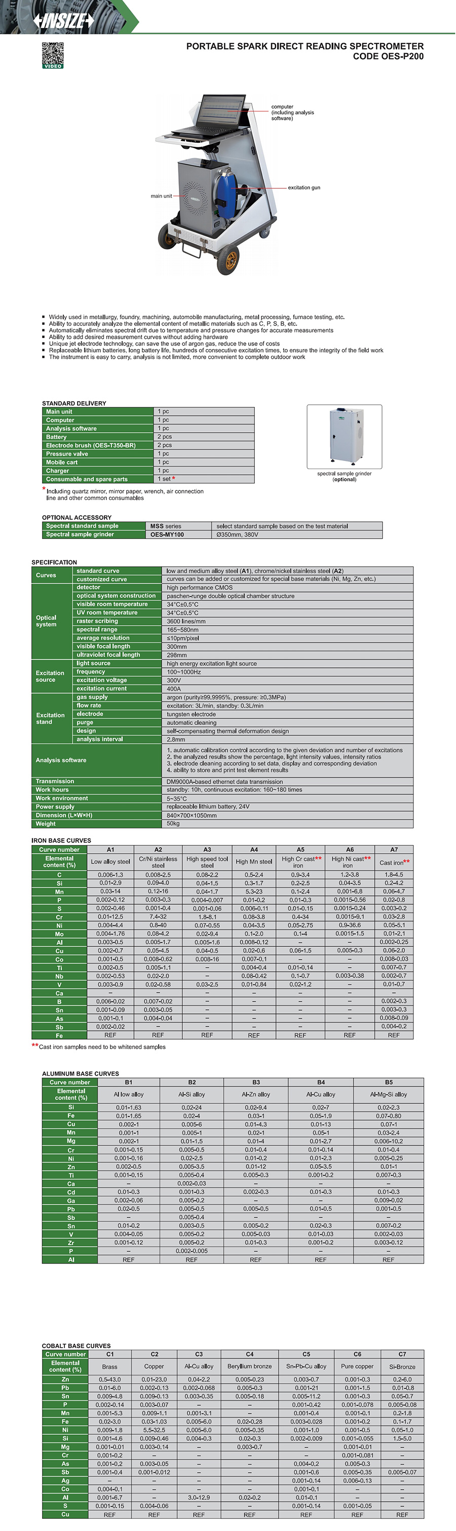 | OES-P200 | OES | component analysis | metal | portable | no |