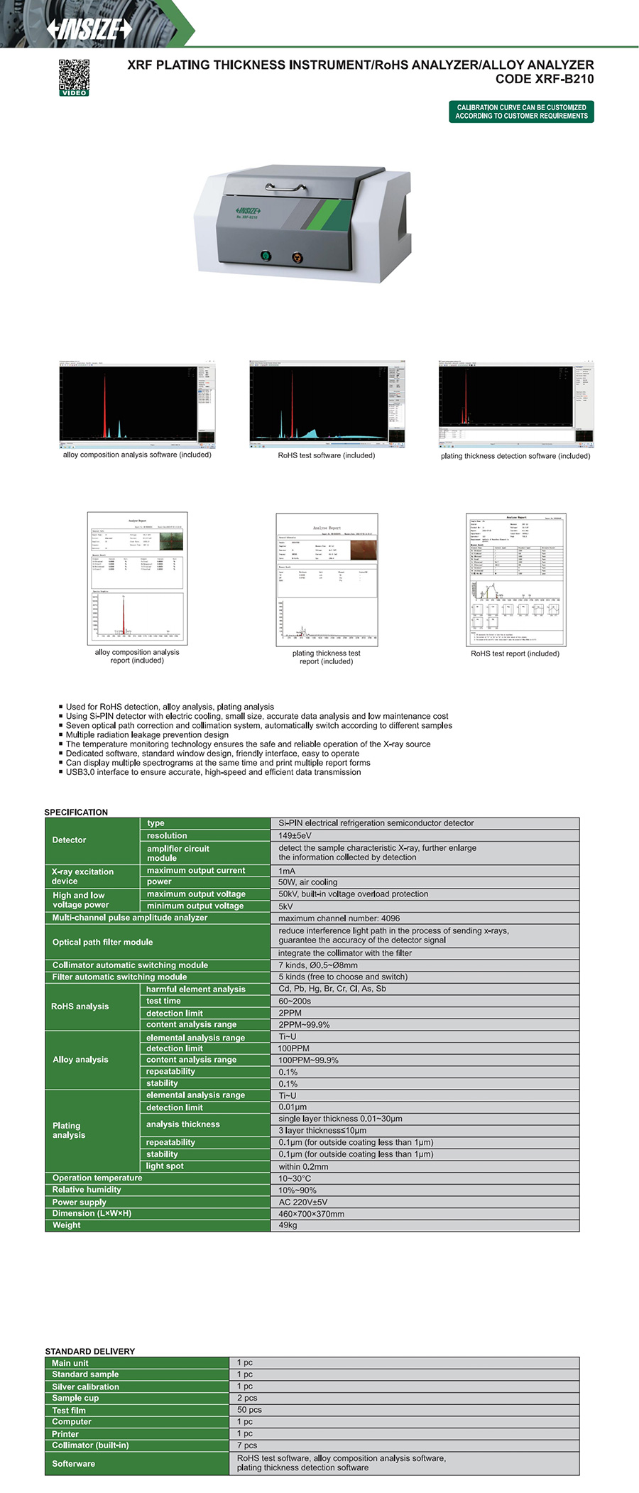Used for RoHS detection, alloy analysis, plating analysis