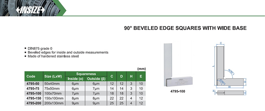 | Code | Size | Squareness Inside (α) | Squareness Outside (β) |