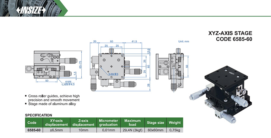 | 6585-60 | ±6.5mm | 10mm | 0.01mm | 60x60mm |