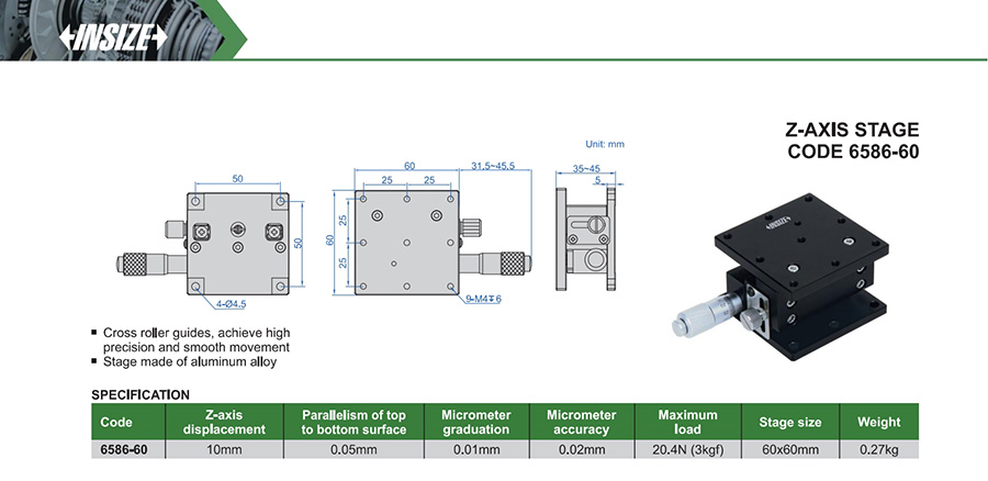| 6586-60 | 0.05mm | 10mm | 0.01mm | 0.02mm | 60x60mm |