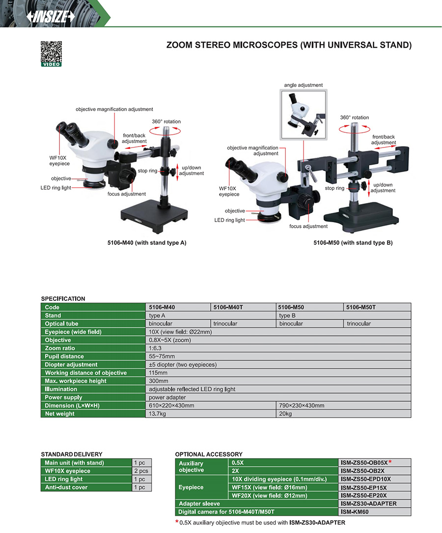 | 5106-M50T | 10X | 0.8X~5X | trinocular | 1: 6.3 | 300mm |