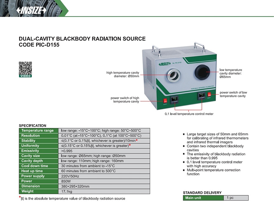 Large target sizes of 50mm and 65mm for calibrating of infrared thermometers and infrared thermal imagers