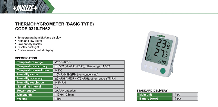 | 0316-TH62 | digital | internal | ±0.5°C (at 26°C~42°C), other range ±1.0°C | 10%RH~99%RH (non-condensing) | ±5%RH (45%RH~79%RH), other range ±7%RH | yes | -20°C~60°C |