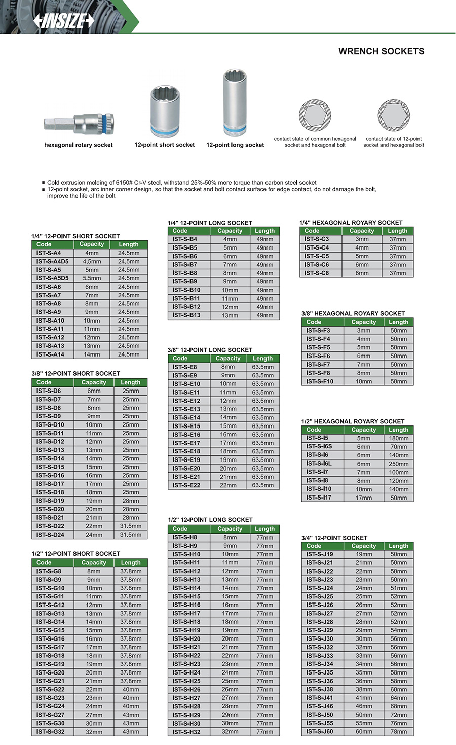 12-point socket, arc inner corner design, so that the socket and bolt contact surface for edge contact, do not damage the bolt, improve the life of the bolt