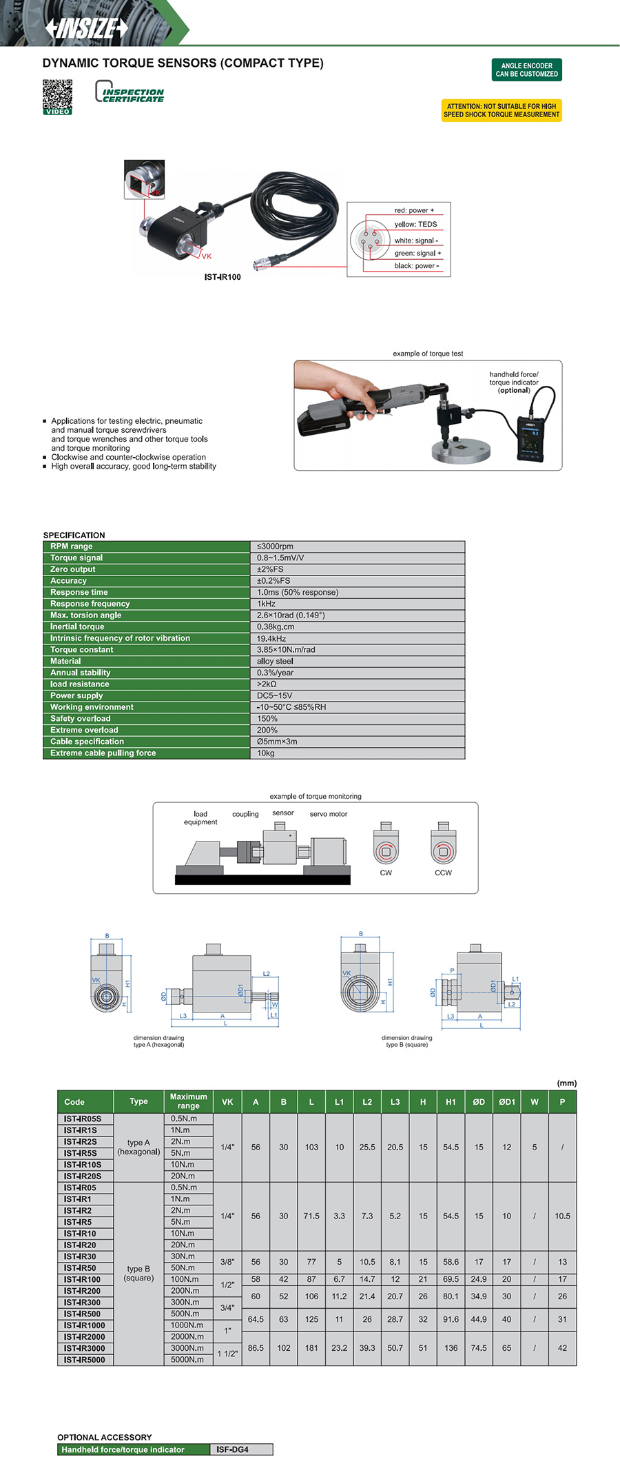 IST-IR200 rotary type dynamic torque portable installation/mounted on machine no 200N.m