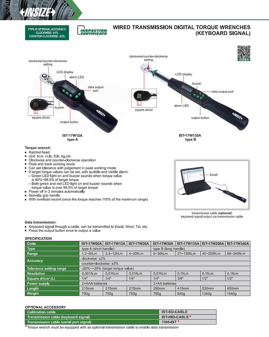 | IST-17W20A | digital | 4~20N.m | wired transmission (keyboard signal) | digital display | fixed ratchet head |