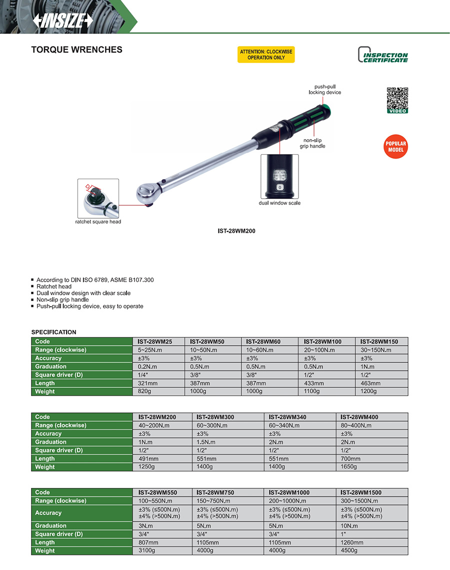 | IST-28WM150 | mechanical preset | 30~150N.m | window design | fixed ratchet head |