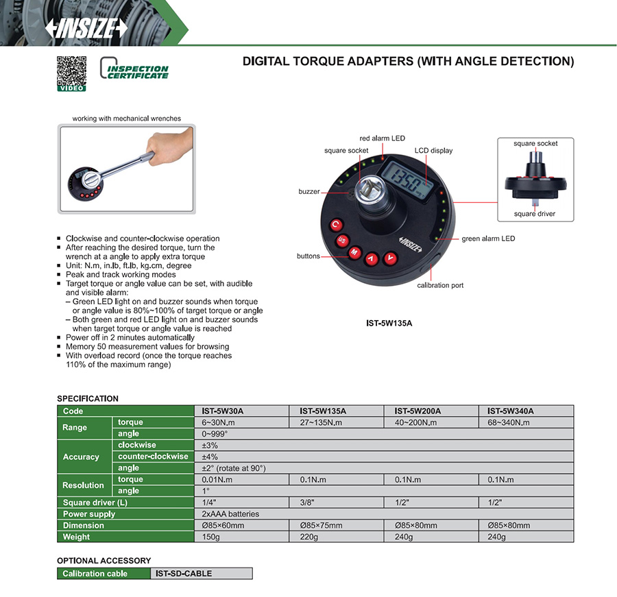 | IST-5W200A | digital | 40~200N.m | with memory storage | digital display | fixed head |