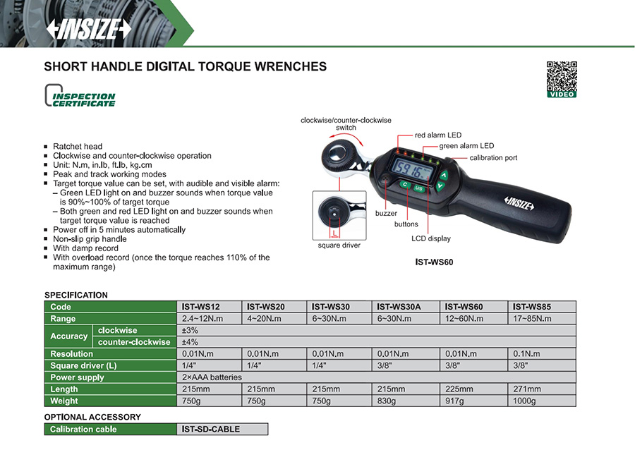| IST-WS60 | digital | 12~60N.m | no transmission | digital display | fixed ratchet head |
