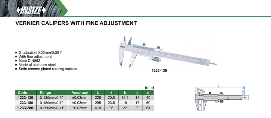 | 1233-130 | 0-130mm/0-5" | ±0.03mm | 0.02mm/0.001" |