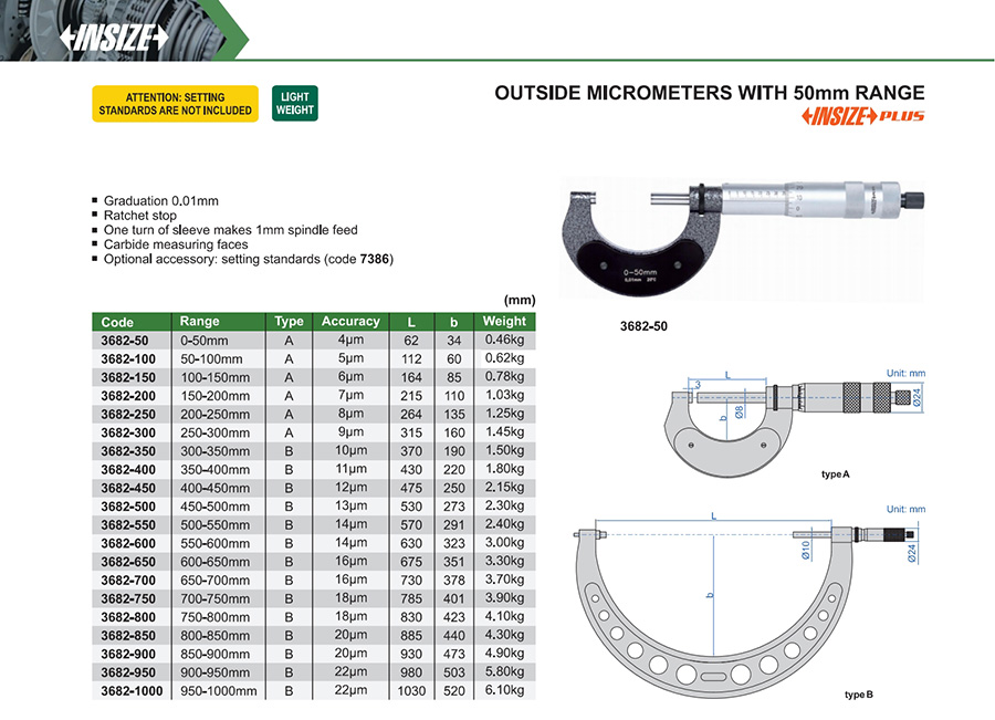 | 3682-1000 | 950-1000mm | 22μm | 0.01mm |