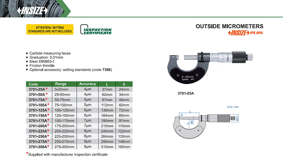 | 3701-25A | 0-25mm | 4µm | 0.01mm |