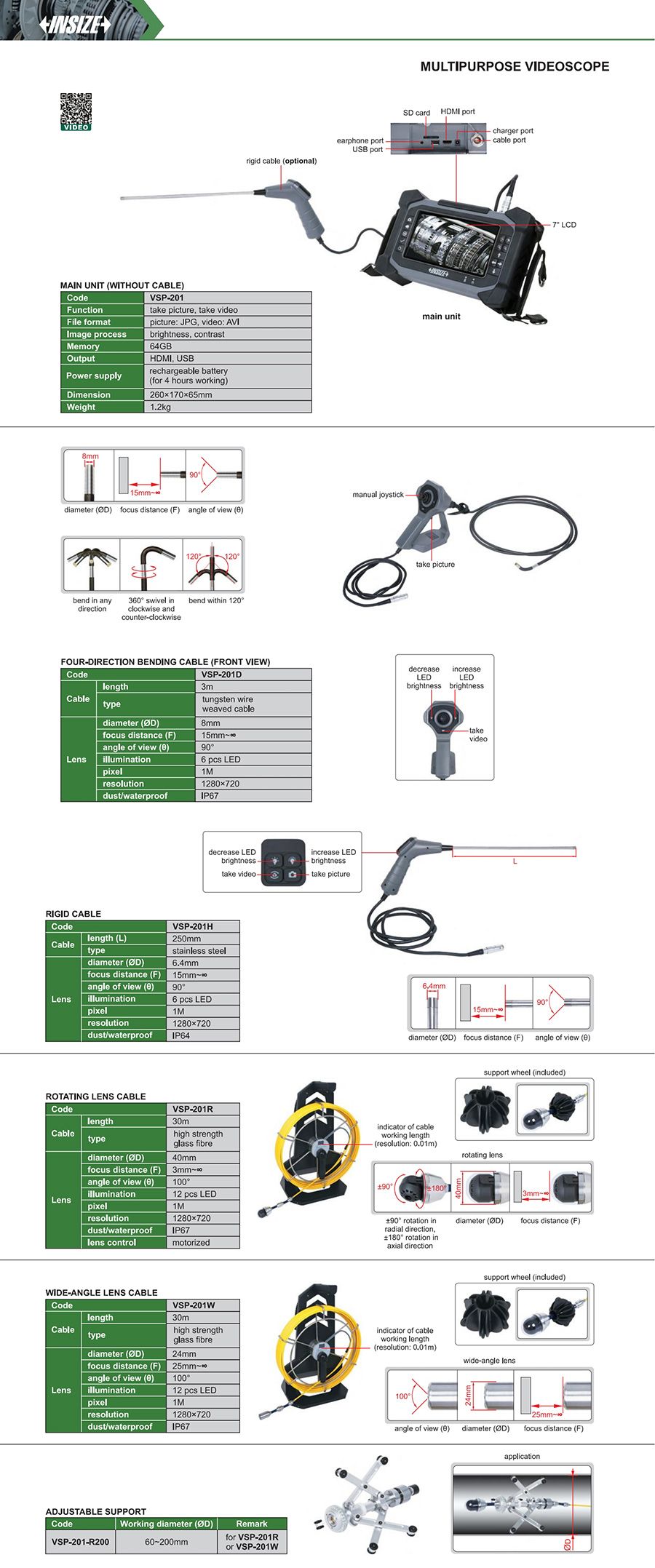 | VSP-201D | 1M | soft (tungsten wire weaved cable) | front view | 8mm | 3m | four directions | 6 pcs LED |